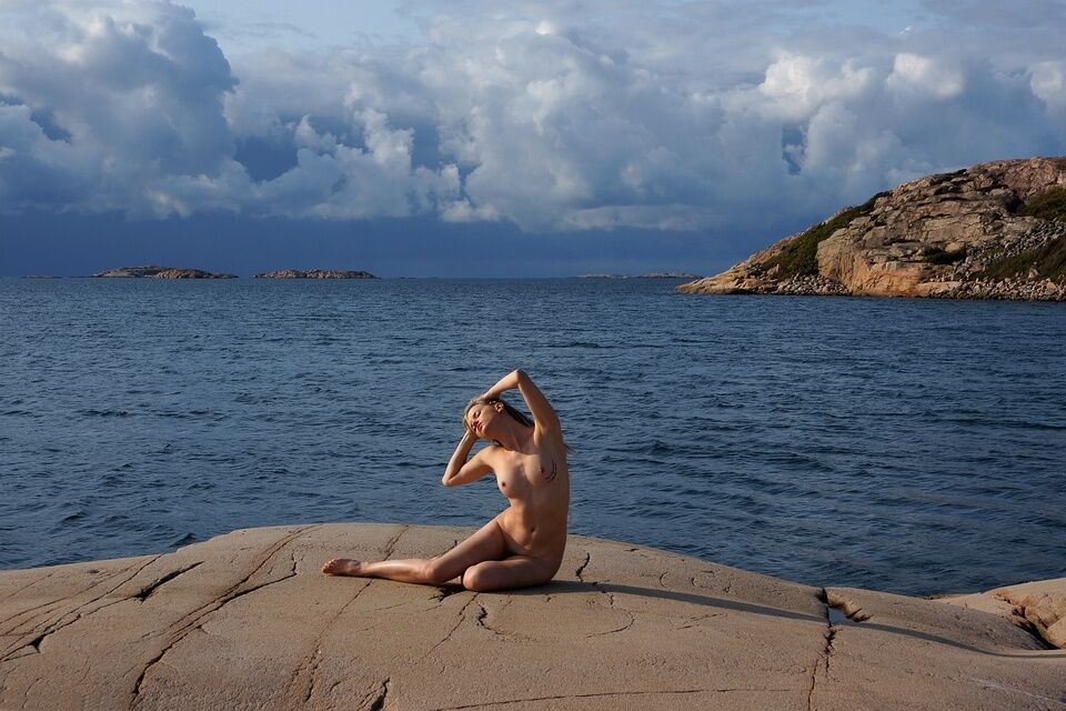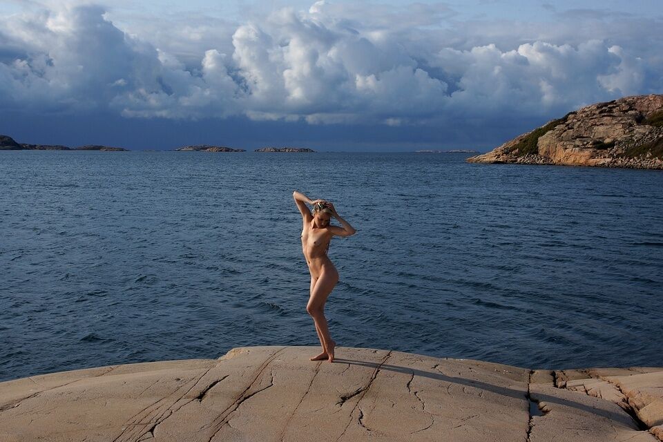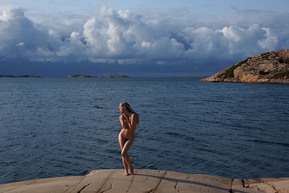 Med modellen Wonderdust Supertramp i Fjällbackas skärgård.