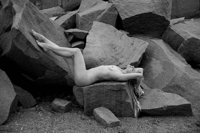 Med den lettiska modellen Wonderdust Supertramp i ett gammalt stenbrott i Fjällbackas skärgård.