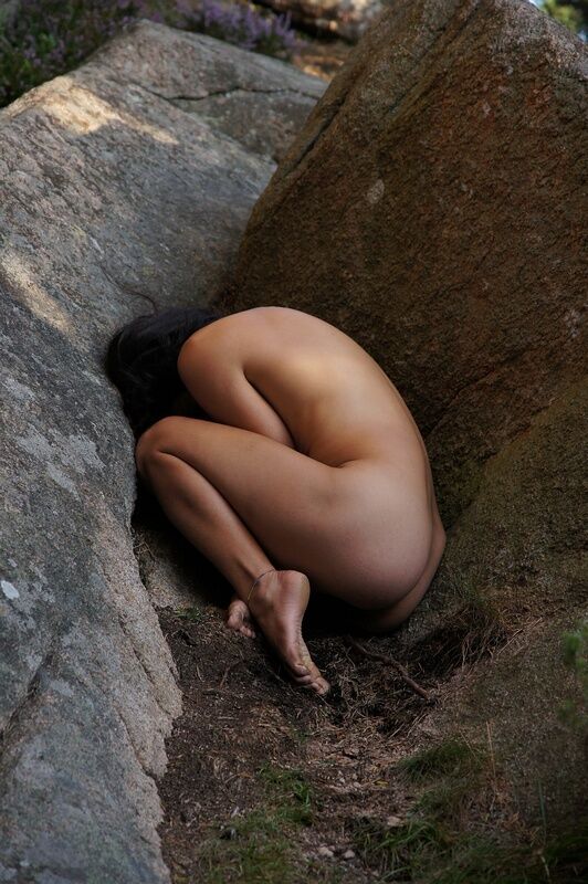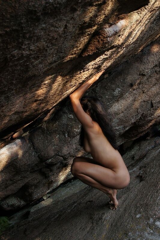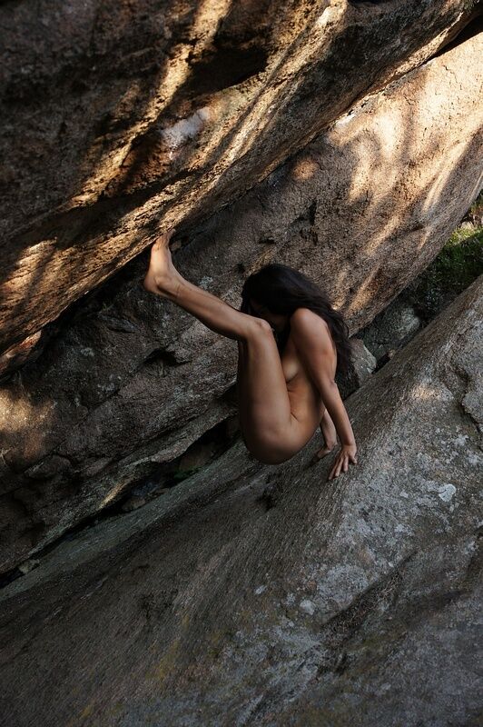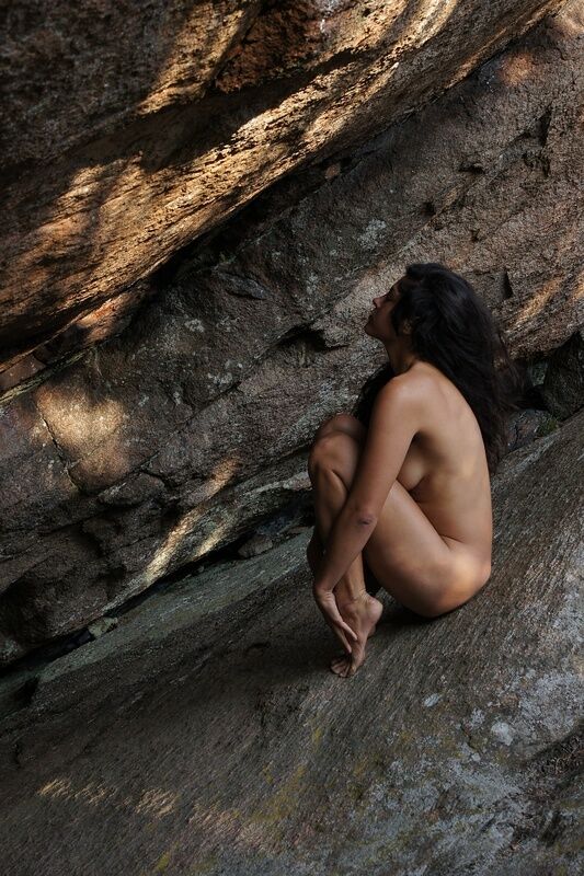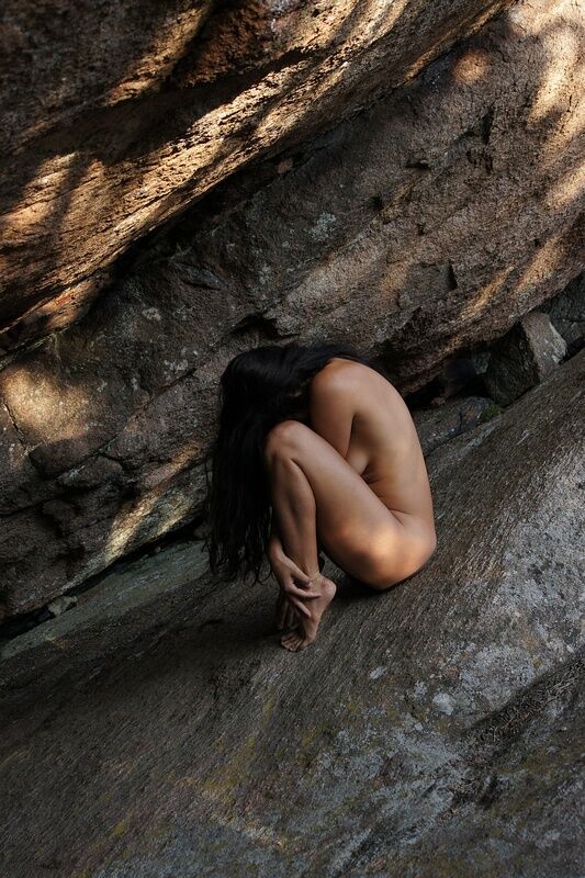 Med den amerikanska modellen Freya på Vetteberget vid Fjällbacka. En stor bergsskreva med en överhängande klippa skapar en grottliknande miljö som det är spännande att fota i.
