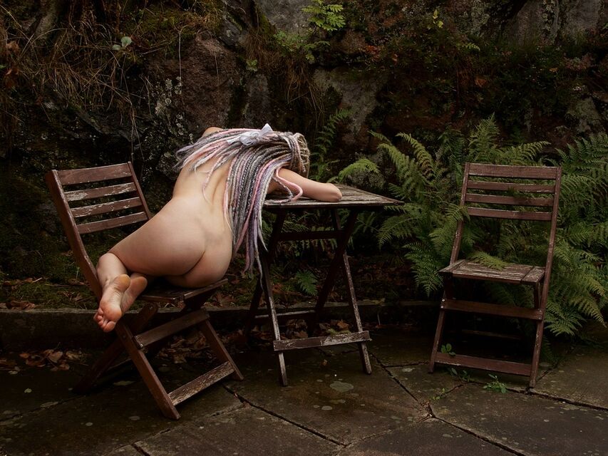 Med den lettiska modellen Wonderdust på pation mellan stugan och berget.
